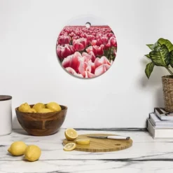 Henrike Schenk – Travel Photography Tulip Field In Holland Floral Cutting Board Round – Deny Designs