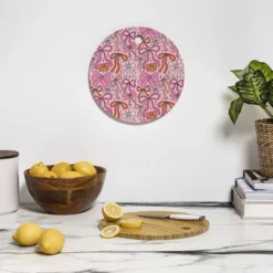 Doodle By Meg Pink Bow Checkered Print Cutting Board – Round