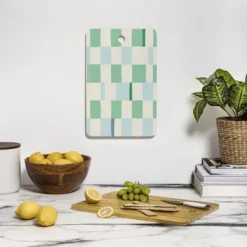 DESIGN D’annick Summer Check Hand Drawn Mint Cutting Board – Rectangle