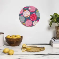Daily Regina Designs Retro Christmas Baubles Colorful Cutting Board – Round